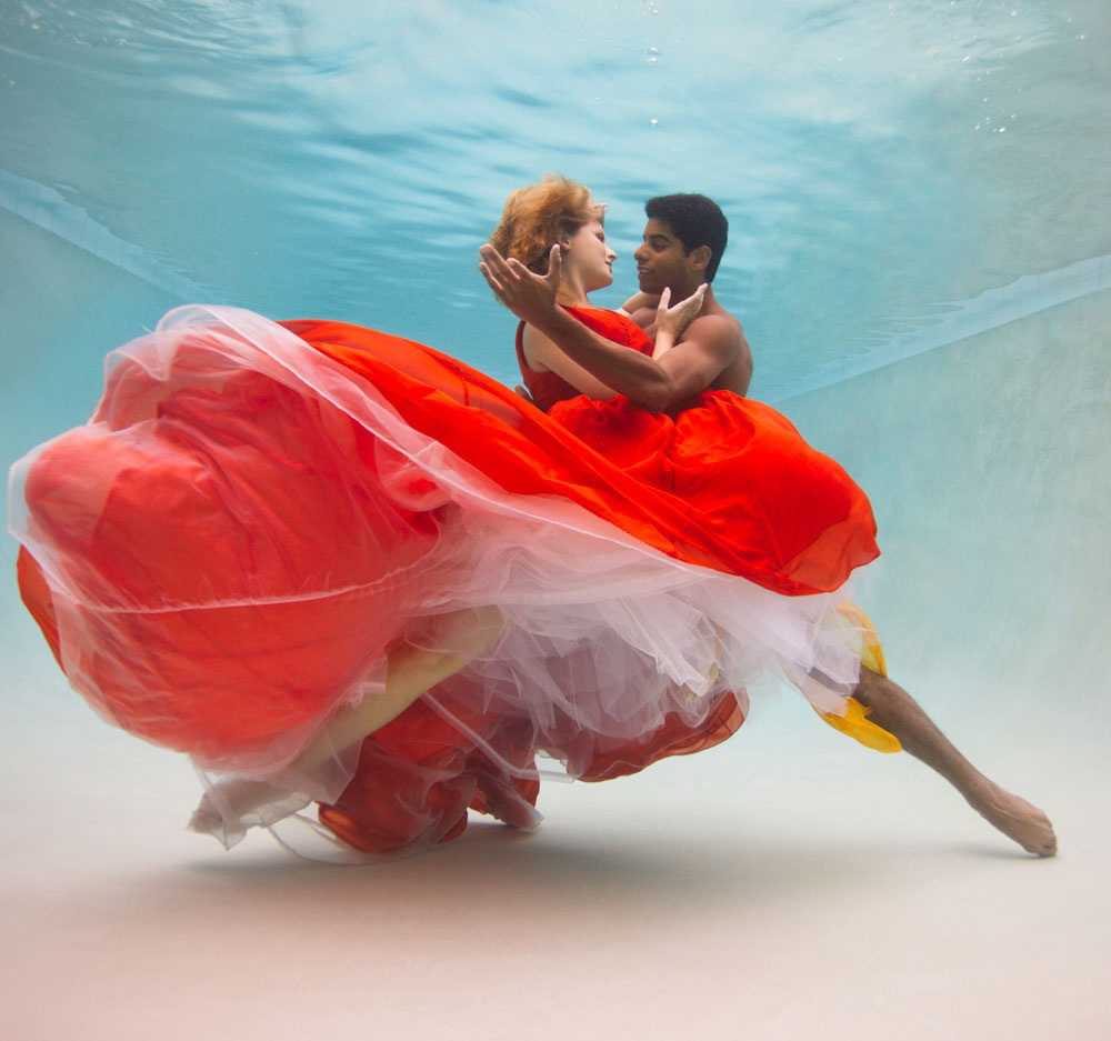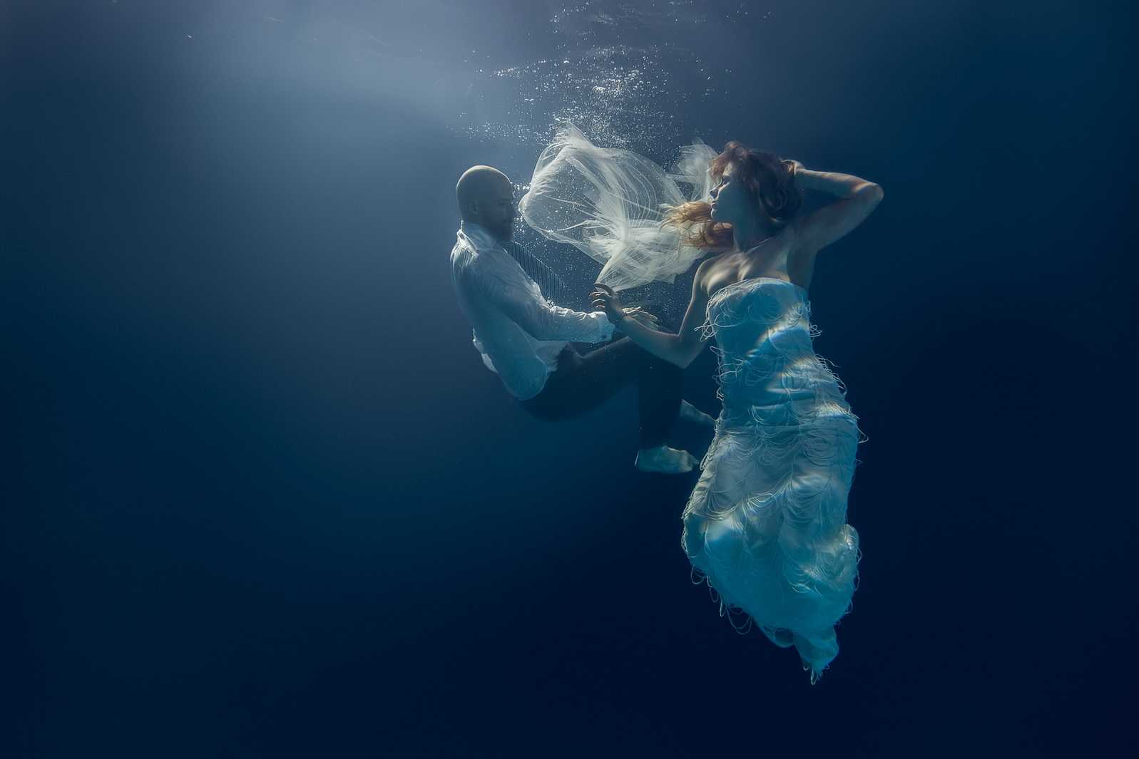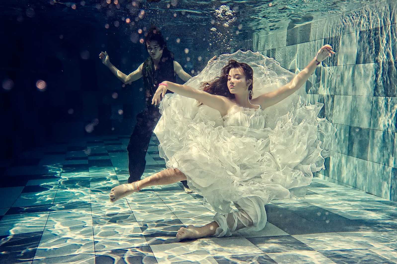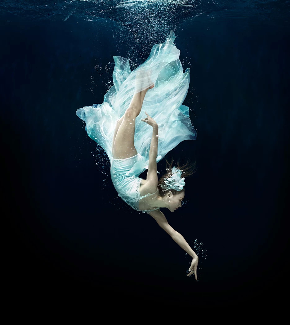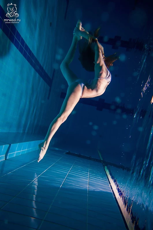 A special category of underwater dances is the photo art which is designed and created by photographers, not choreographers. The result is presented in attractive images, usually with photo corrections, compilations and photomontage in Photoshop and similar software. It allows to achieve amazing effects and fantastic photos that generally can’t be purely captured in reality. Besides, it gives freedom for imagination and creativity by using professional models instead of dancers during the photoshoot. The models are familiar with the camera and know how to better present themselves. All these factors can lead to very successful results.