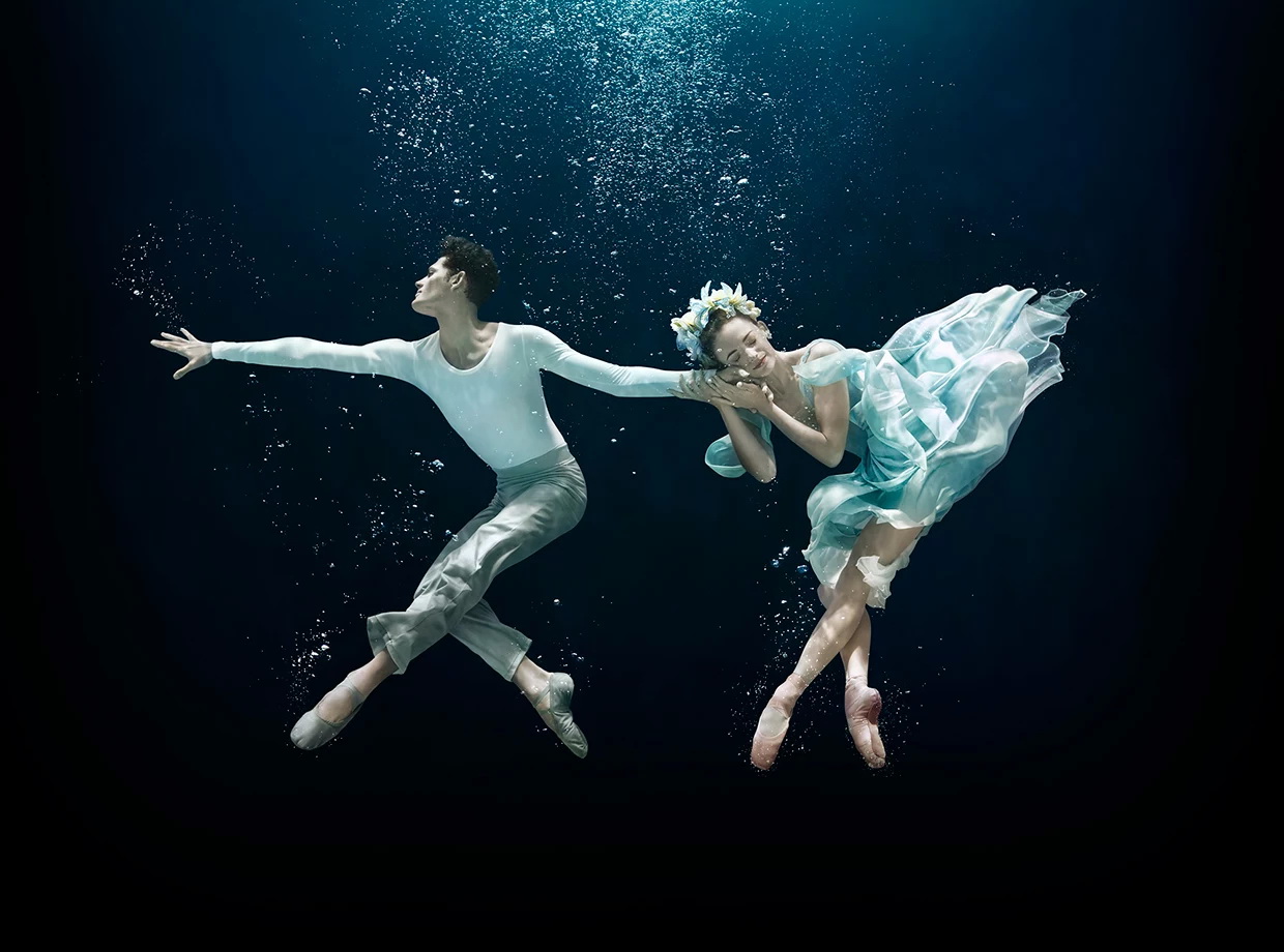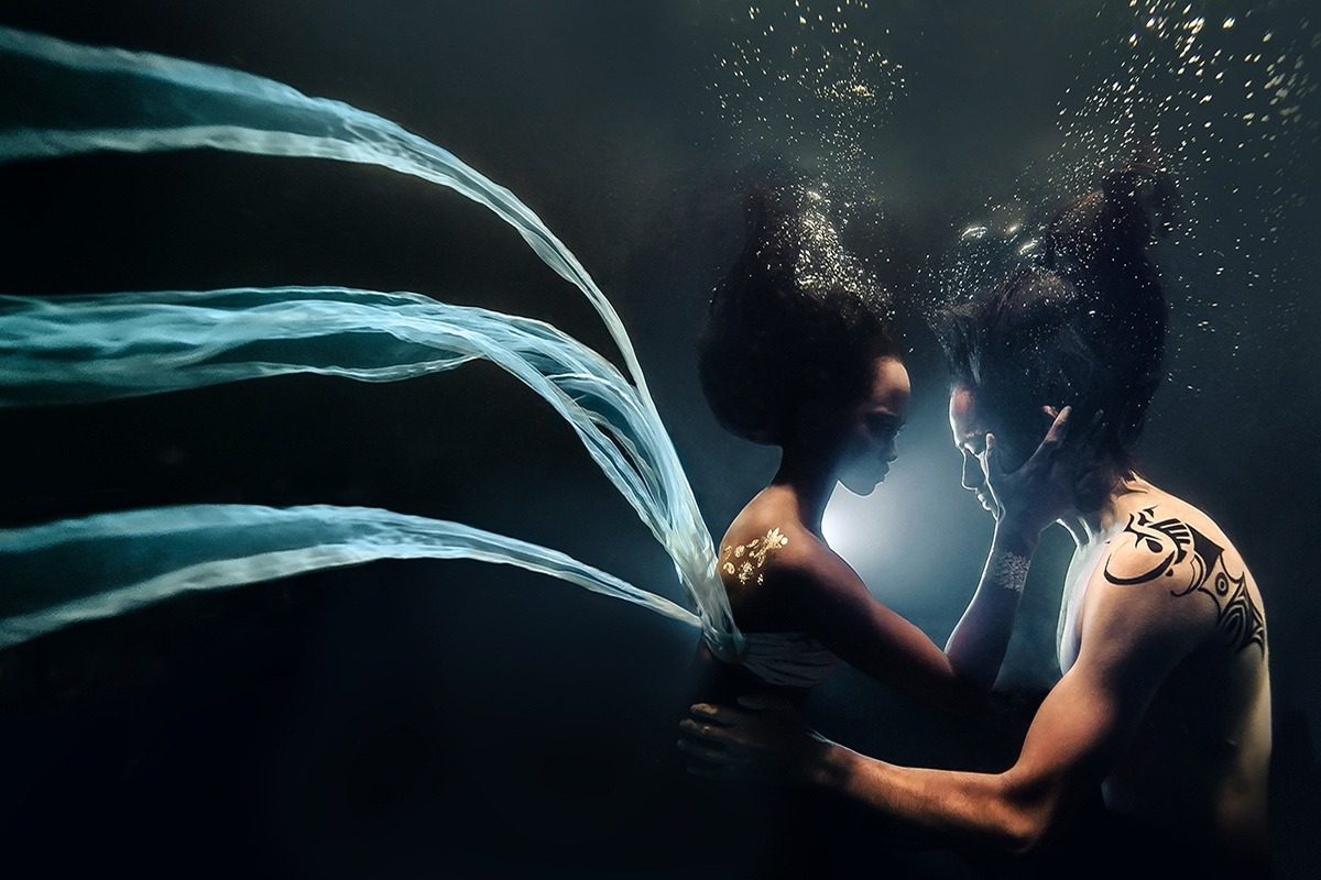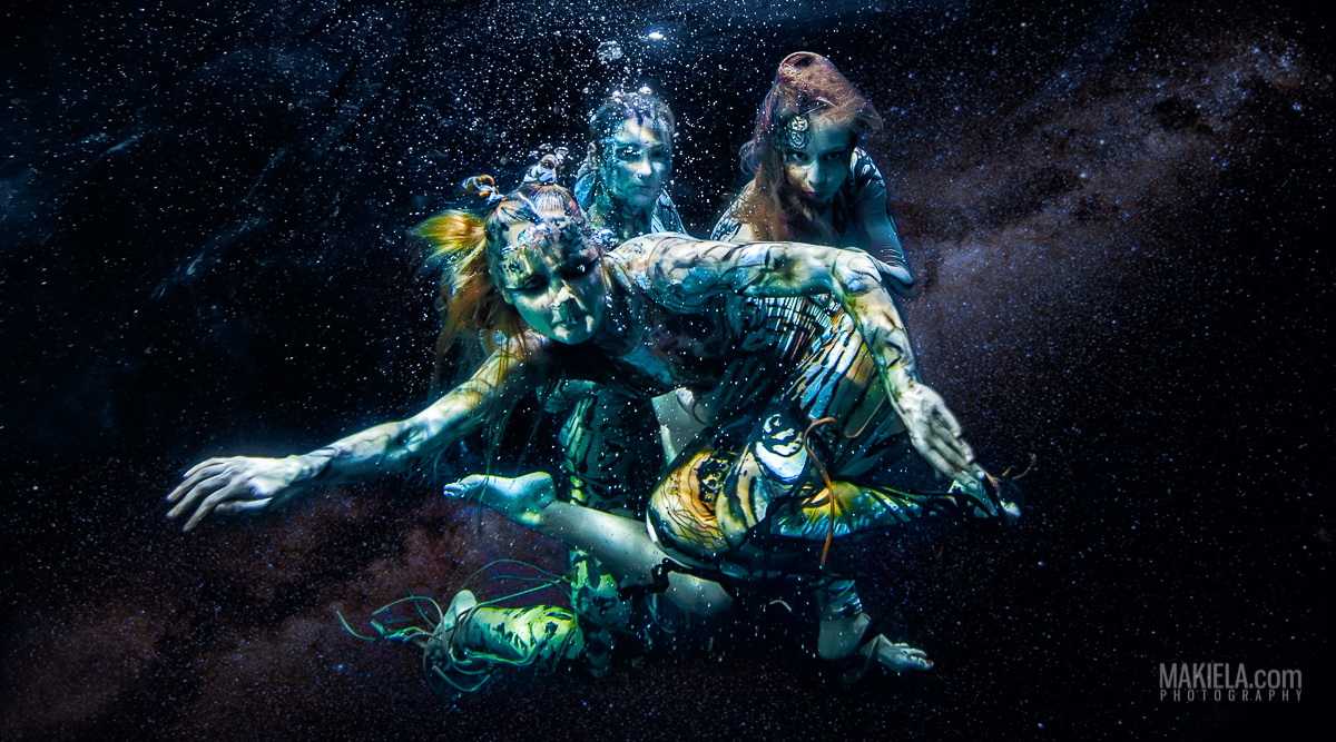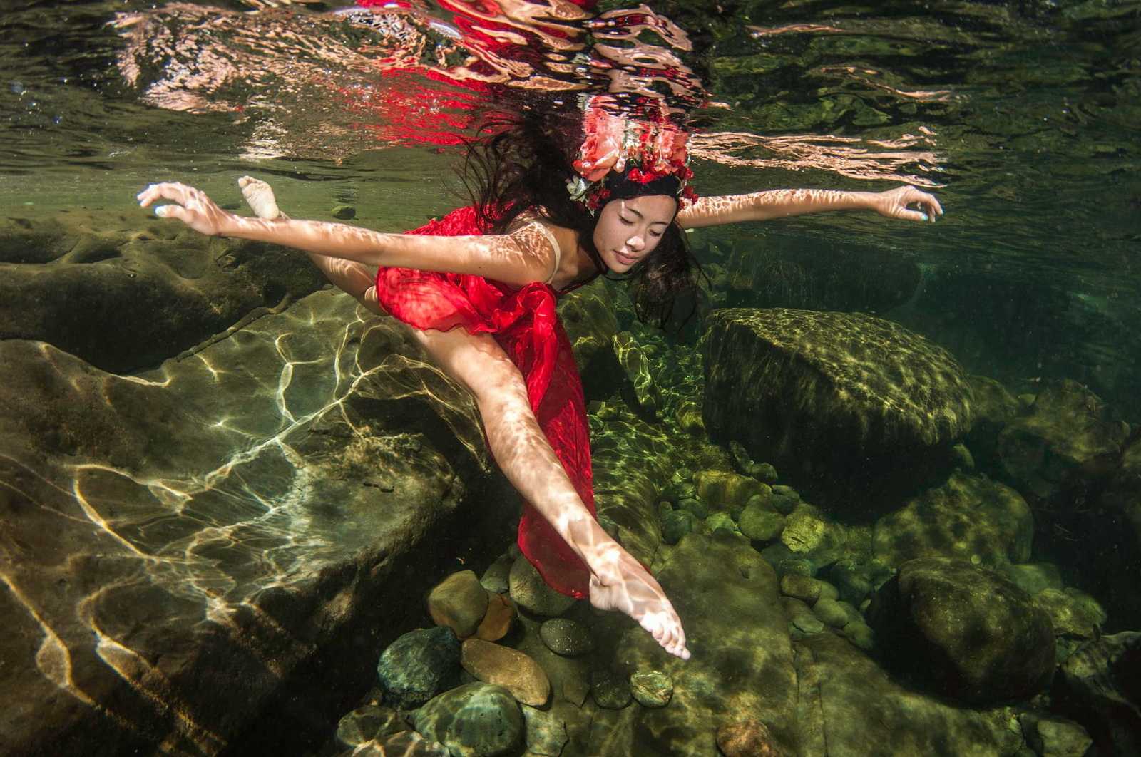 A special category of underwater dances is the photo art which is designed and created by photographers, not choreographers. The result is presented in attractive images, usually with photo corrections, compilations and photomontage in Photoshop and similar software. It allows to achieve amazing effects and fantastic photos that generally can’t be purely captured in reality. Besides, it gives freedom for imagination and creativity by using professional models instead of dancers during the photoshoot. The models are familiar with the camera and know how to better present themselves. All these factors can lead to very successful results.