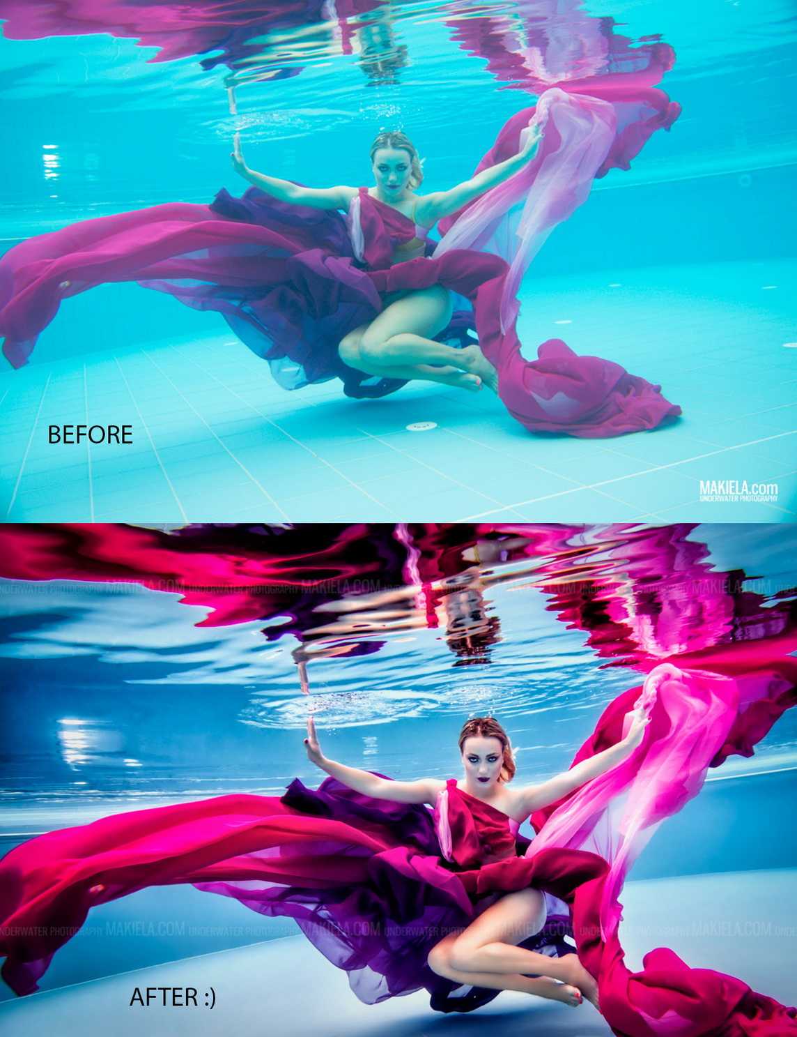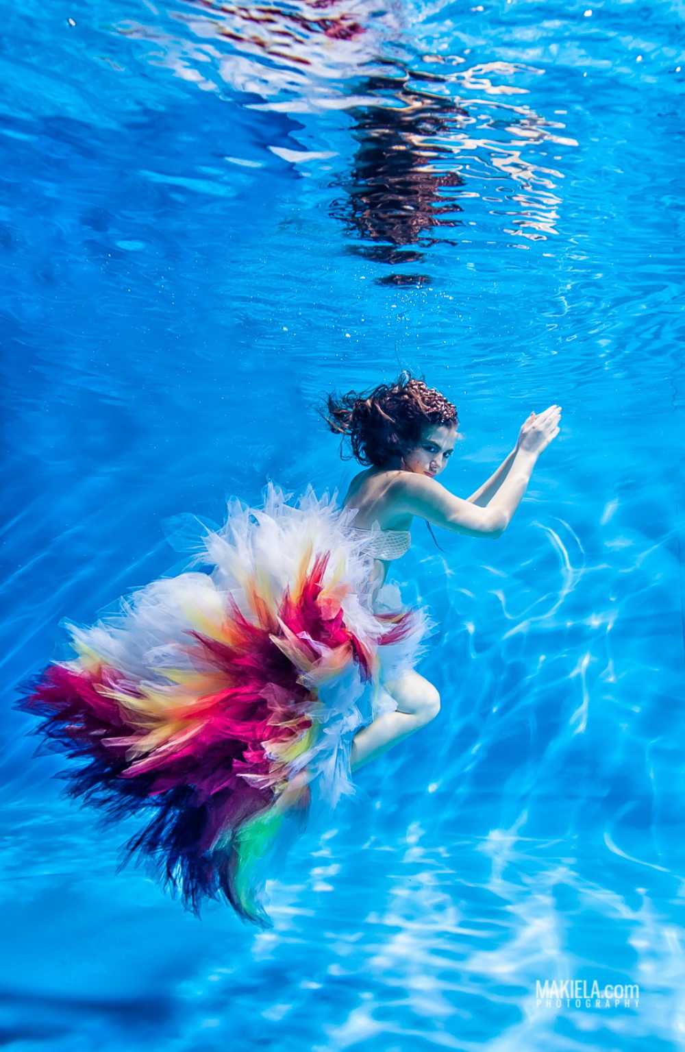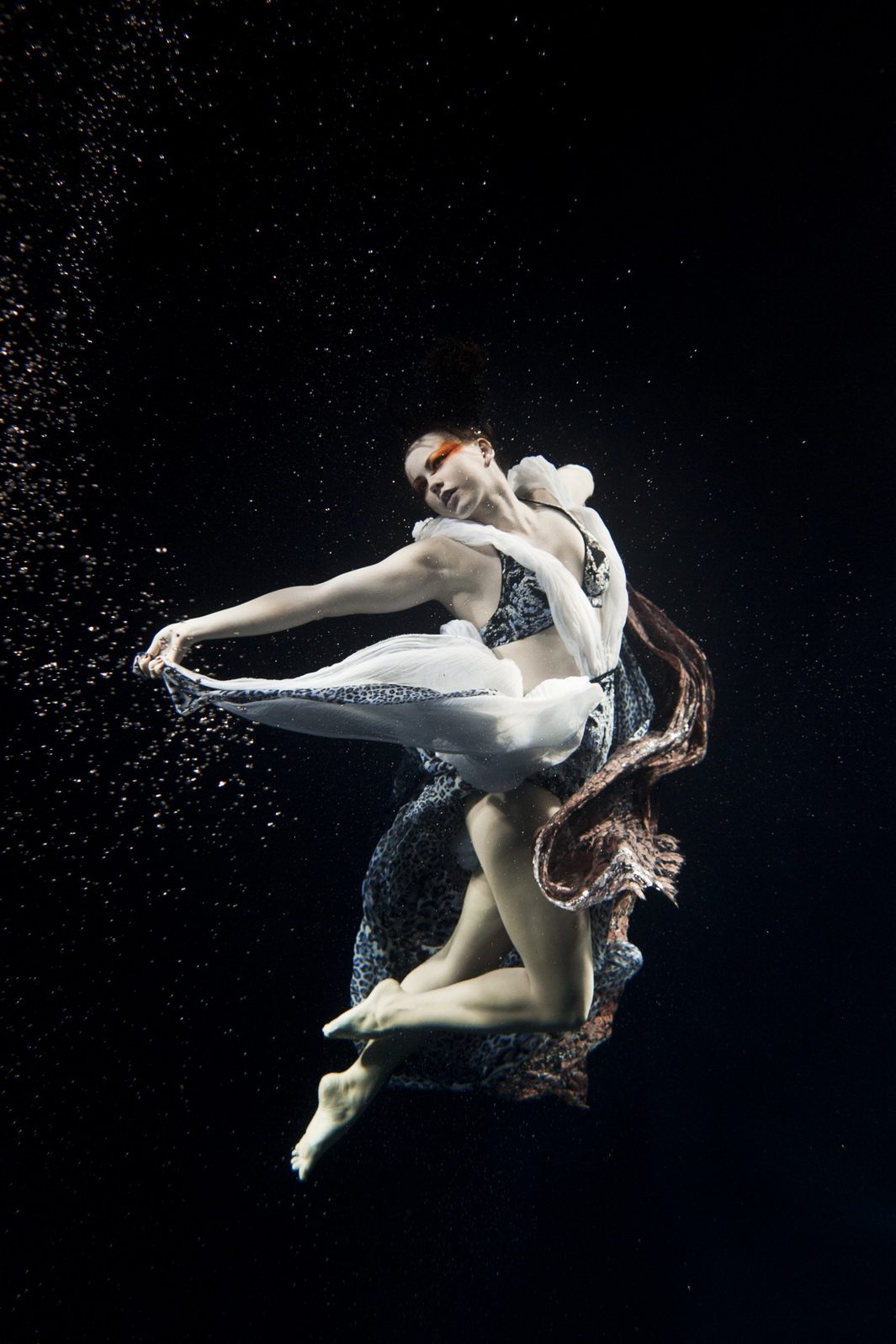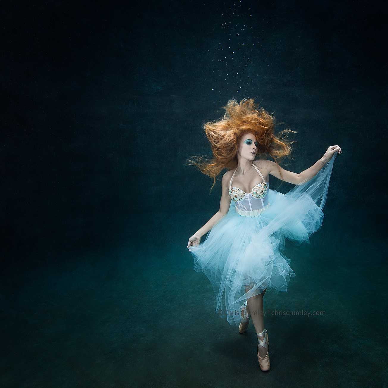 A special category of underwater dances is the photo art which is designed and created by photographers, not choreographers. The result is presented in attractive images, usually with photo corrections, compilations and photomontage in Photoshop and similar software. It allows to achieve amazing effects and fantastic photos that generally can’t be purely captured in reality. Besides, it gives freedom for imagination and creativity by using professional models instead of dancers during the photoshoot. The models are familiar with the camera and know how to better present themselves. All these factors can lead to very successful results.