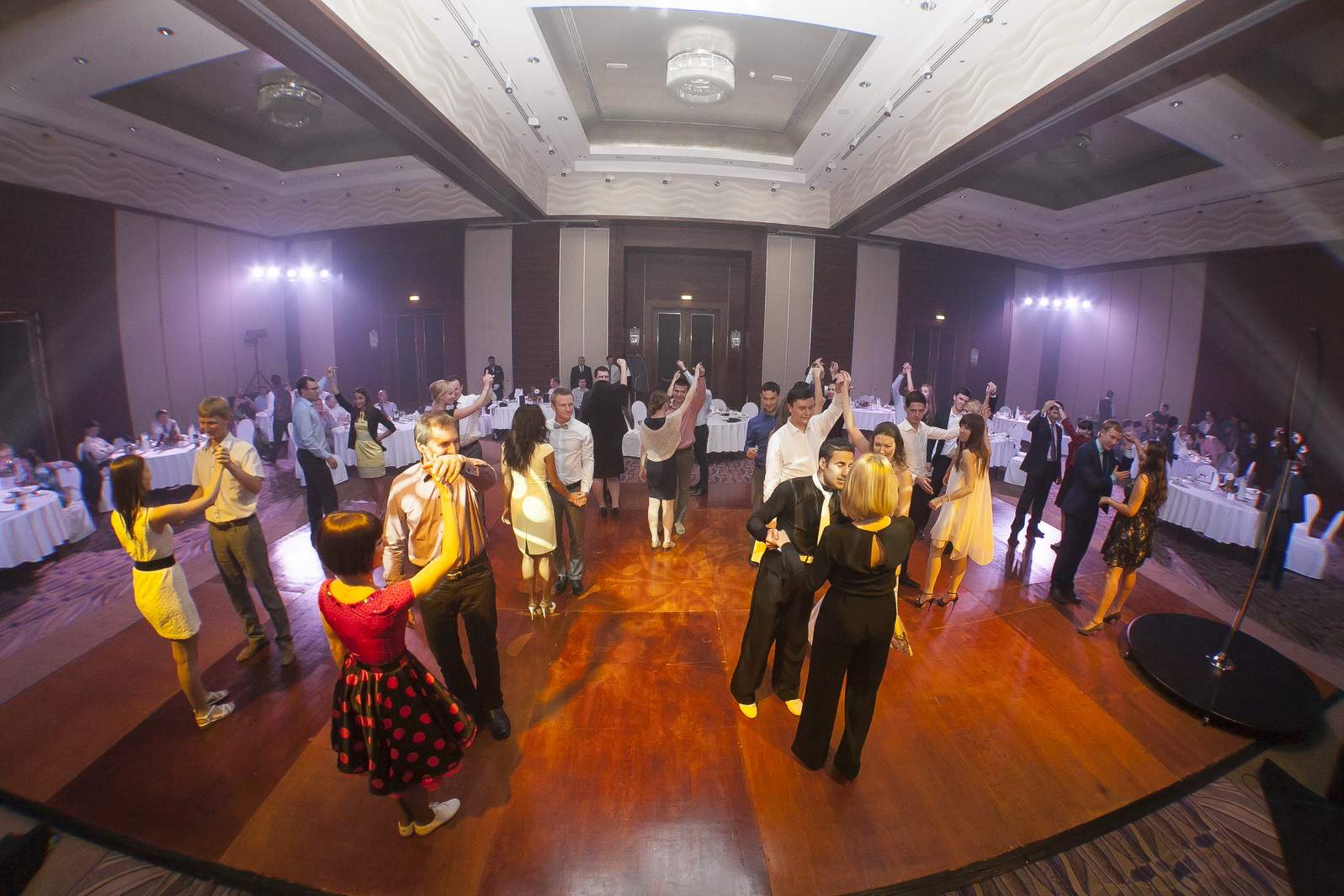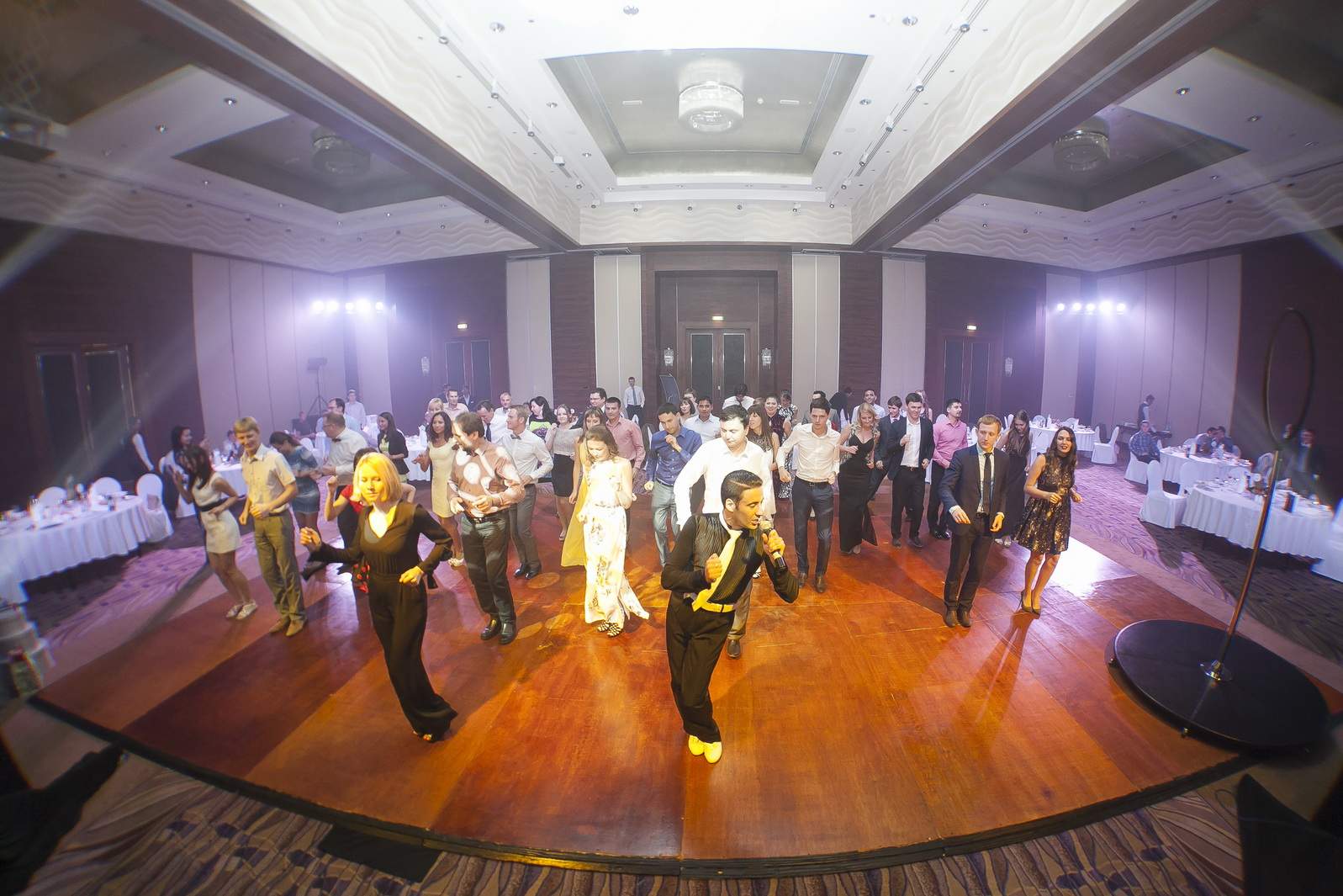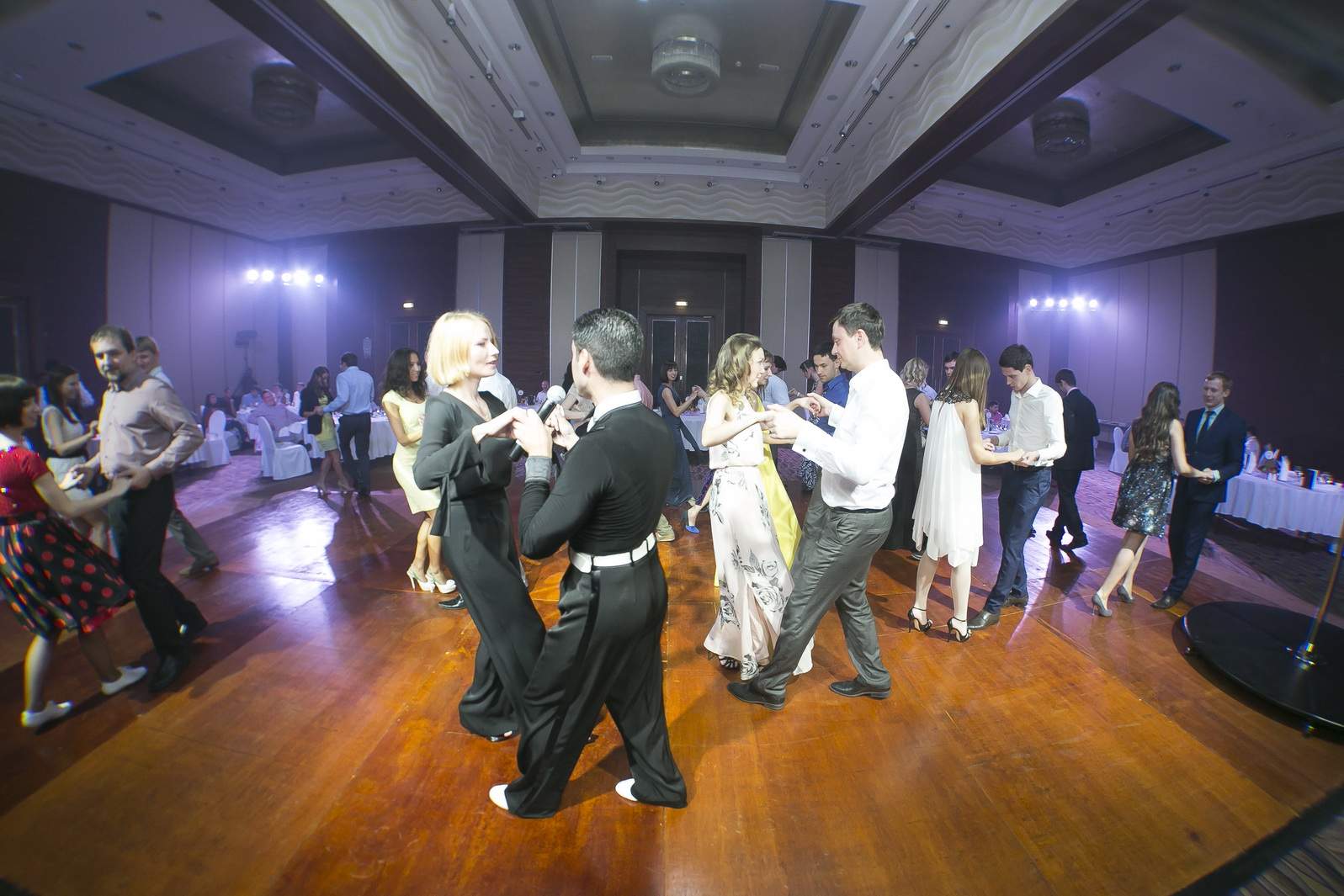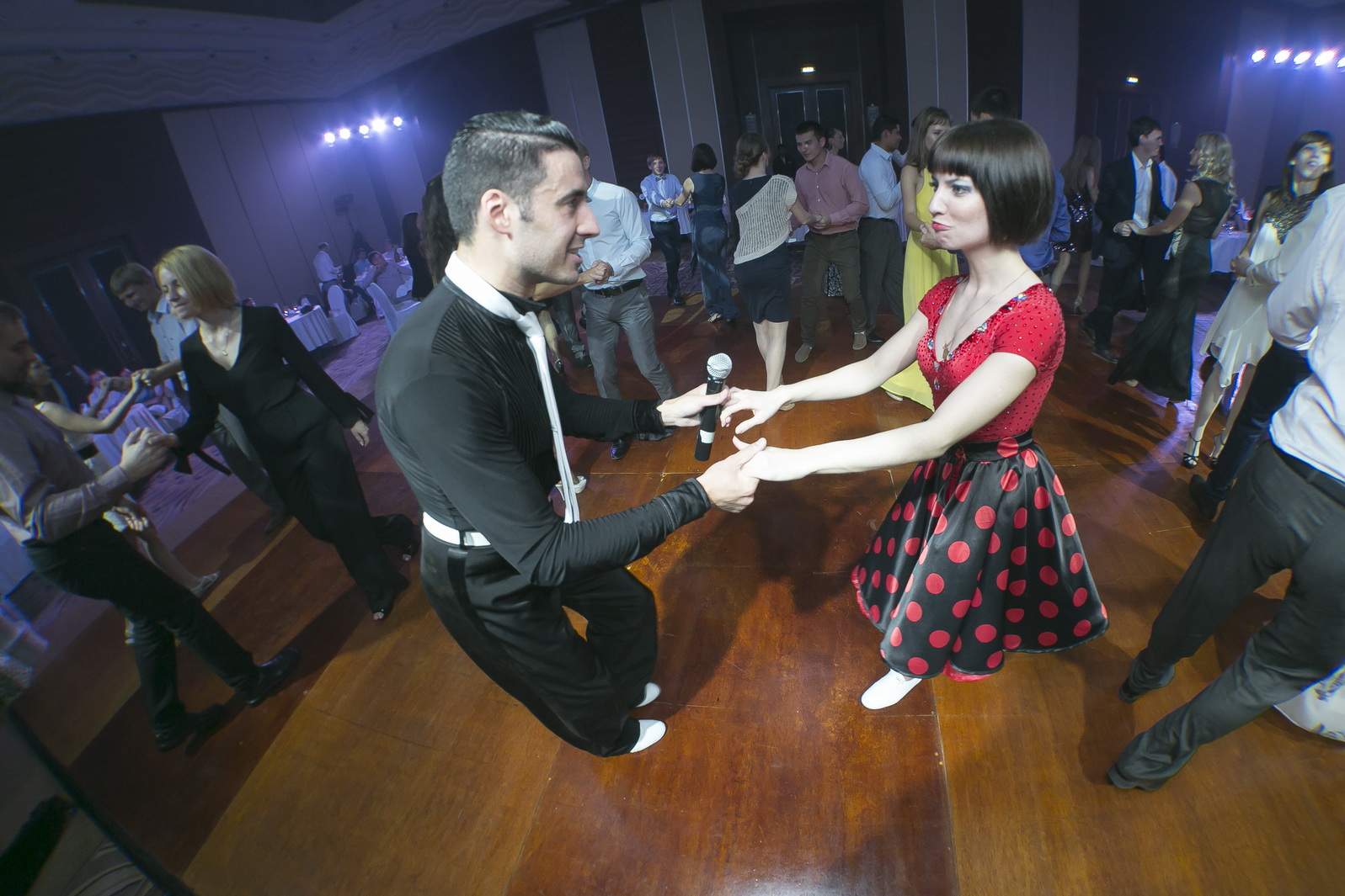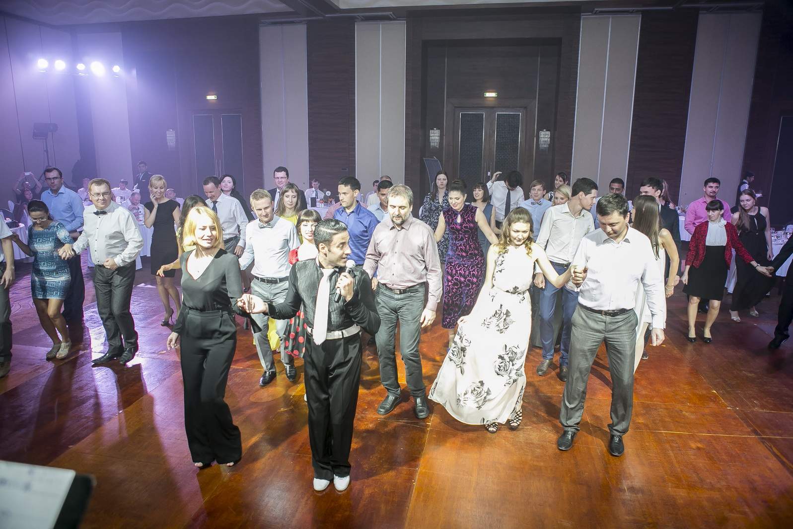 Photos from Master Class events organized by our dance studio. Such events take place on our home ballroom dancing floor, but more often we leave our studio and go to the client's place. For example, we organized such events at restaurants (parties), work (team building events), schools, etc. Our dance teachers and instructors show dance moves that can be learnt easily and quickly, and create a friendly atmospehere of music, lights and dance. Read more about our Master Class offers.
