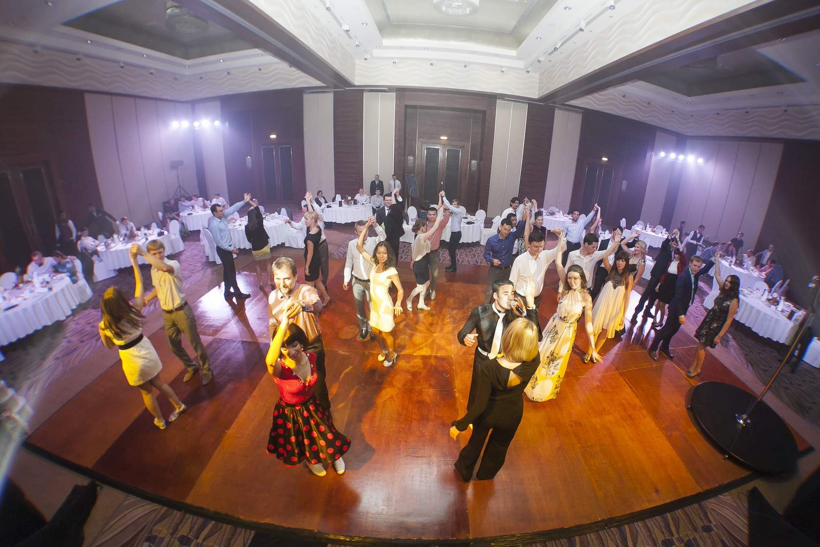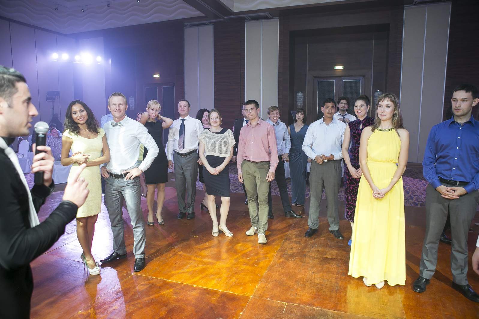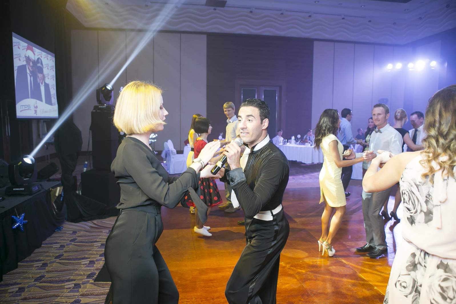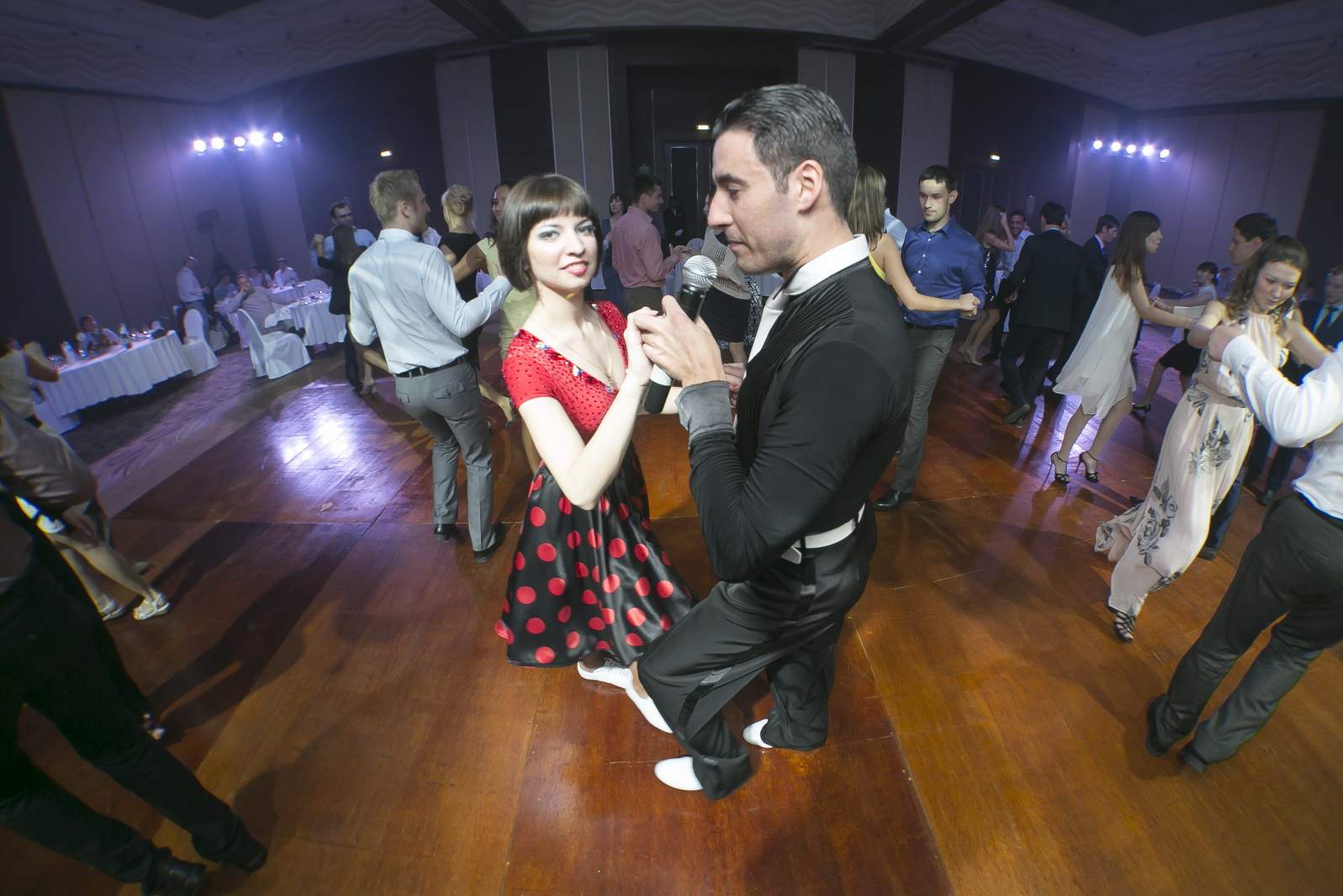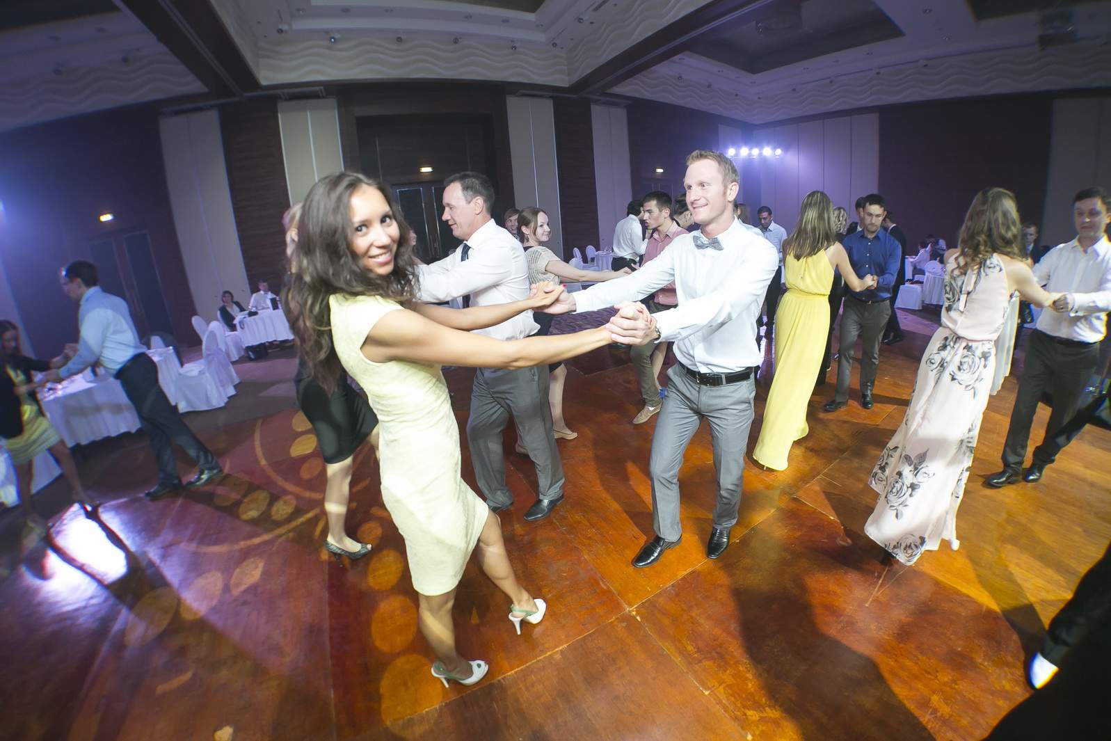 Photos from Master Class events organized by our dance studio. Such events take place on our home ballroom dancing floor, but more often we leave our studio and go to the client's place. For example, we organized such events at restaurants (parties), work (team building events), schools, etc. Our dance teachers and instructors show dance moves that can be learnt easily and quickly, and create a friendly atmospehere of music, lights and dance. Read more about our Master Class offers.