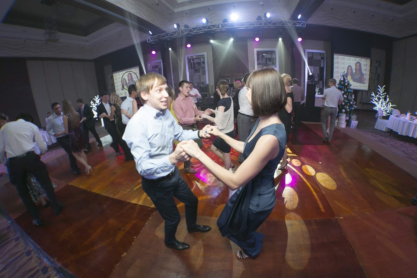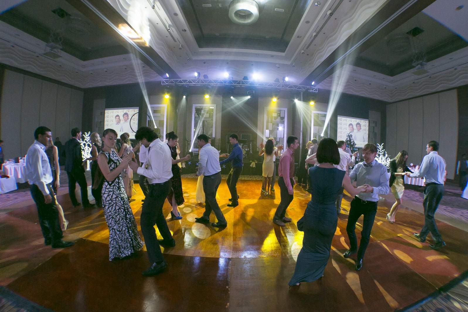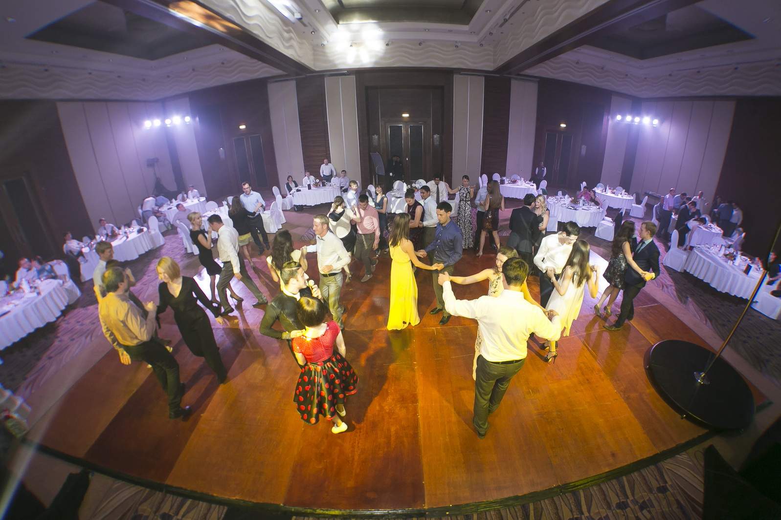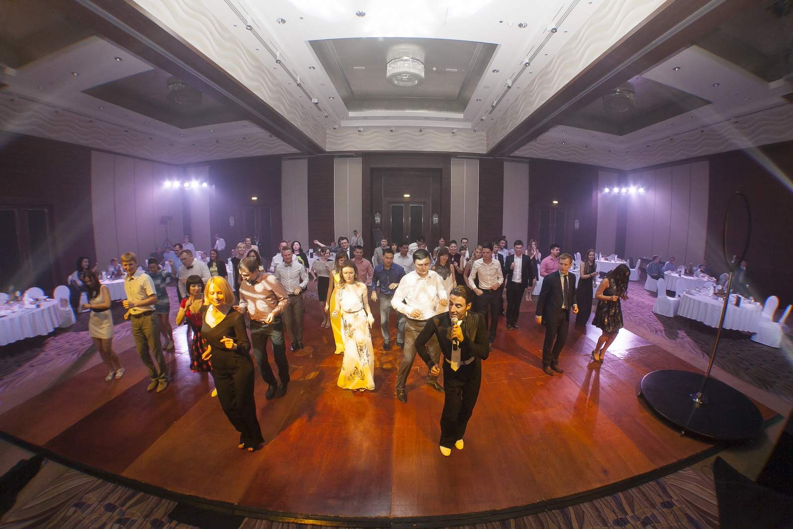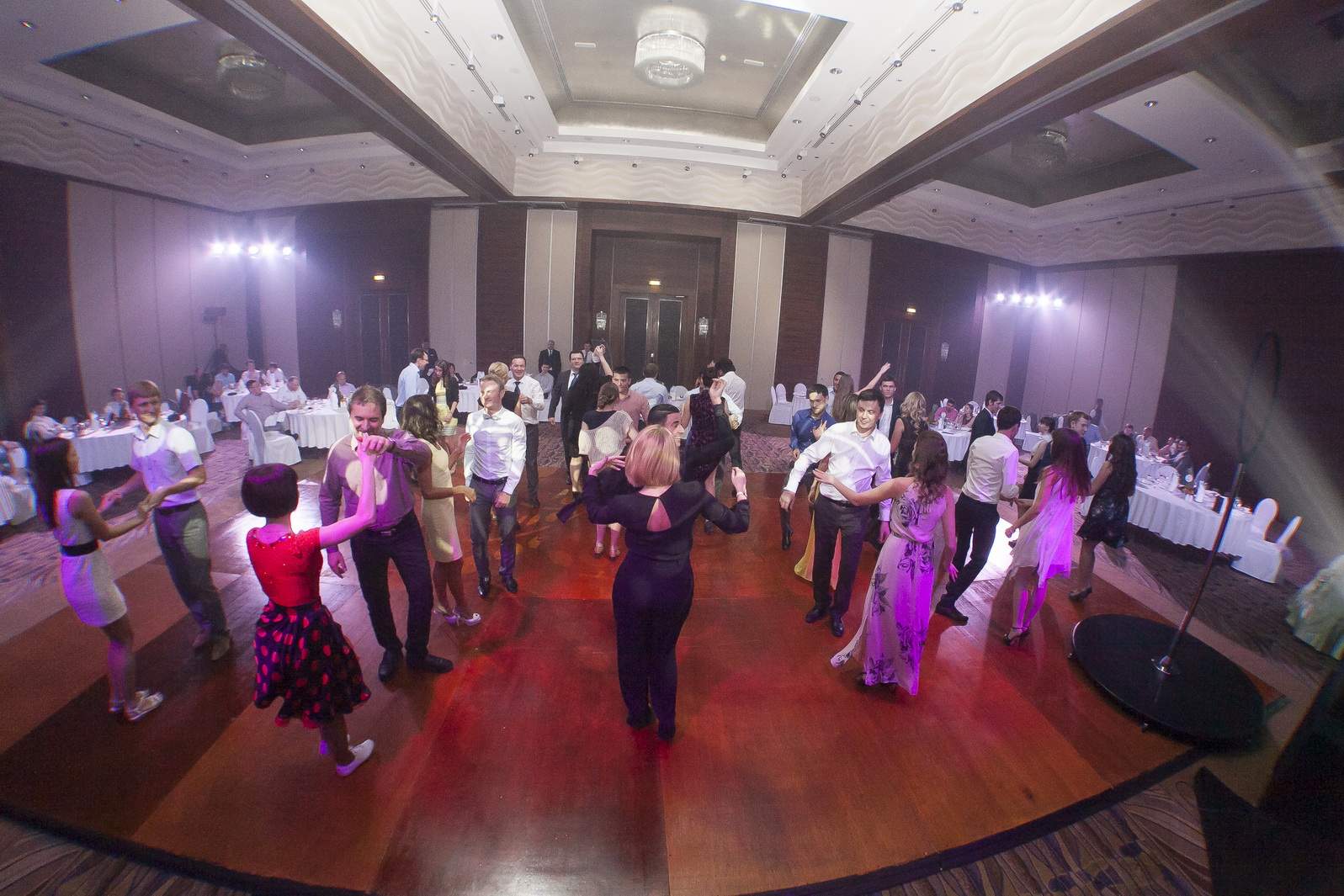 Photos from Master Class events organized by our dance studio. Such events take place on our home ballroom dancing floor, but more often we leave our studio and go to the client's place. For example, we organized such events at restaurants (parties), work (team building events), schools, etc. Our dance teachers and instructors show dance moves that can be learnt easily and quickly, and create a friendly atmospehere of music, lights and dance. Read more about our Master Class offers.