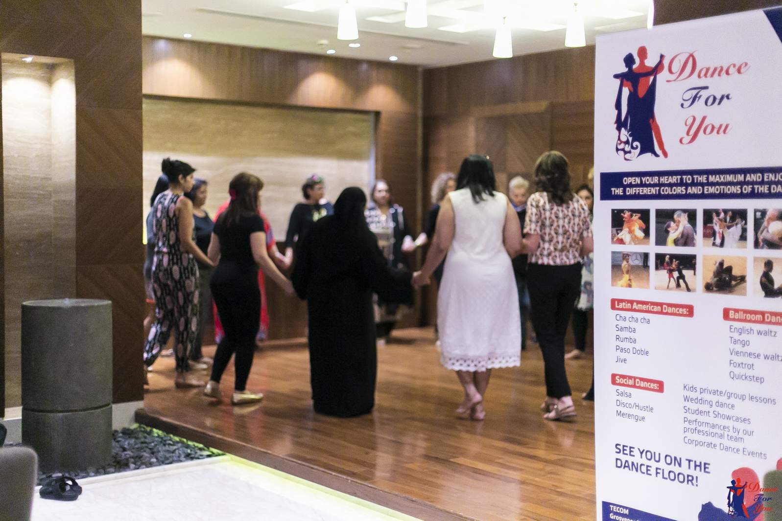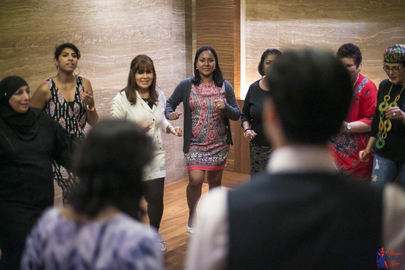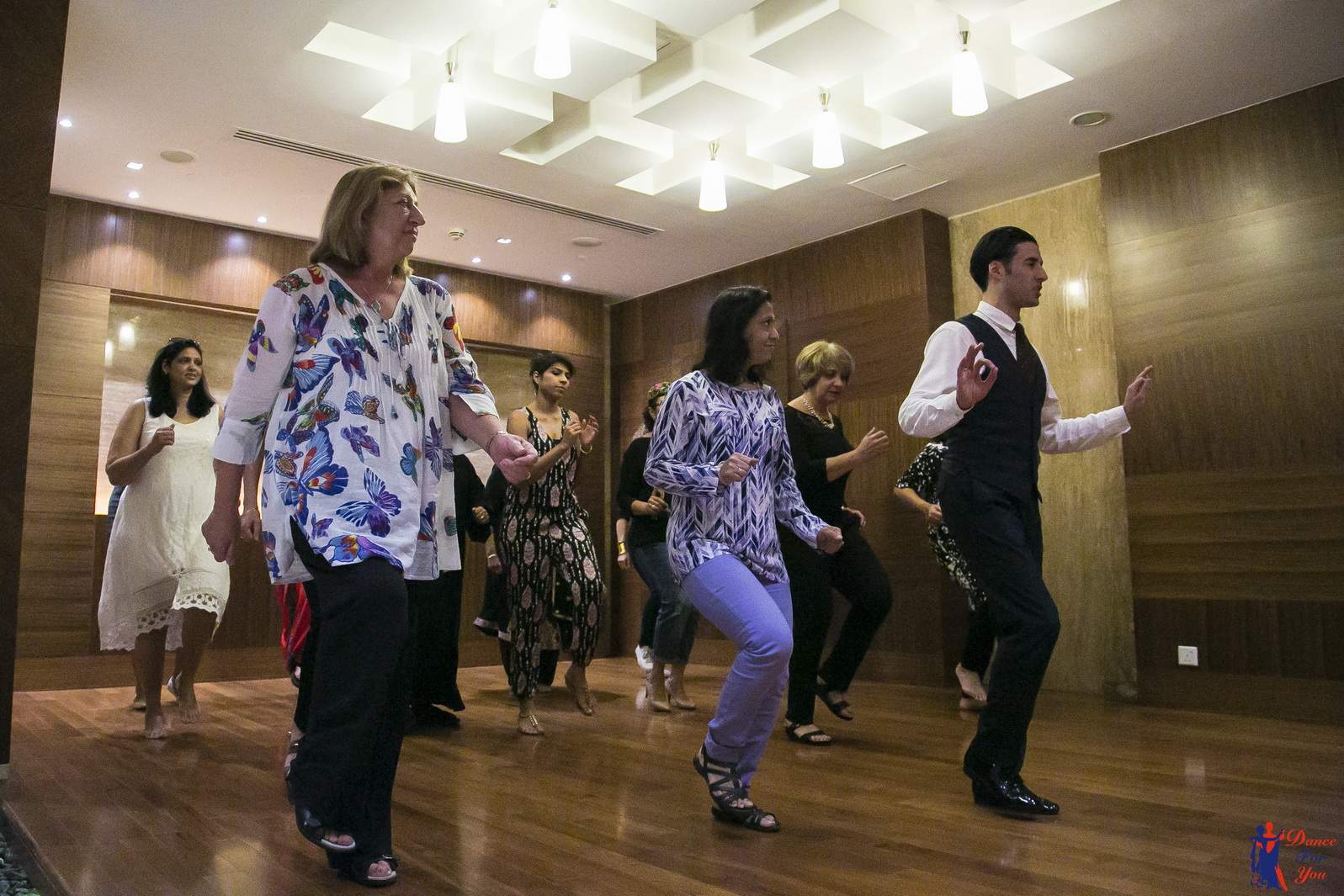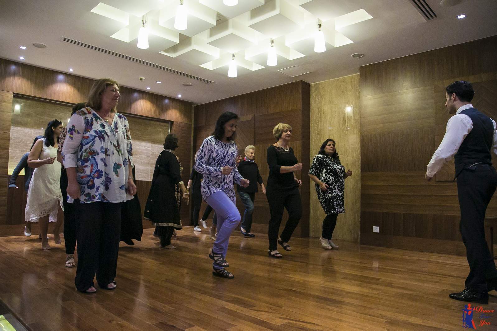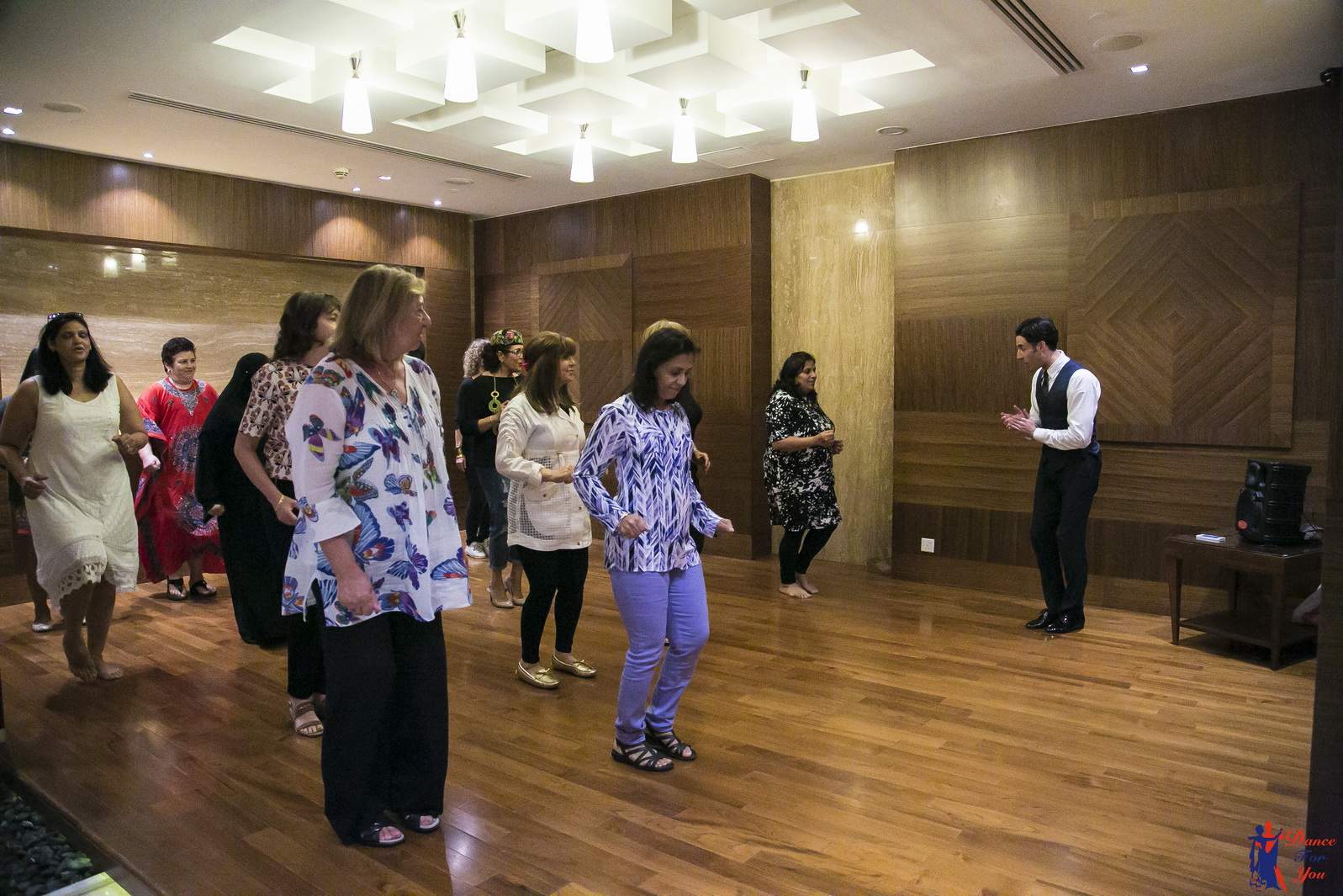 Photos from Master Class events organized by our dance studio. Such events take place on our home ballroom dancing floor, but more often we leave our studio and go to the client's place. For example, we organized such events at restaurants (parties), work (team building events), schools, etc. Our dance teachers and instructors show dance moves that can be learnt easily and quickly, and create a friendly atmospehere of music, lights and dance. Read more about our Master Class offers.