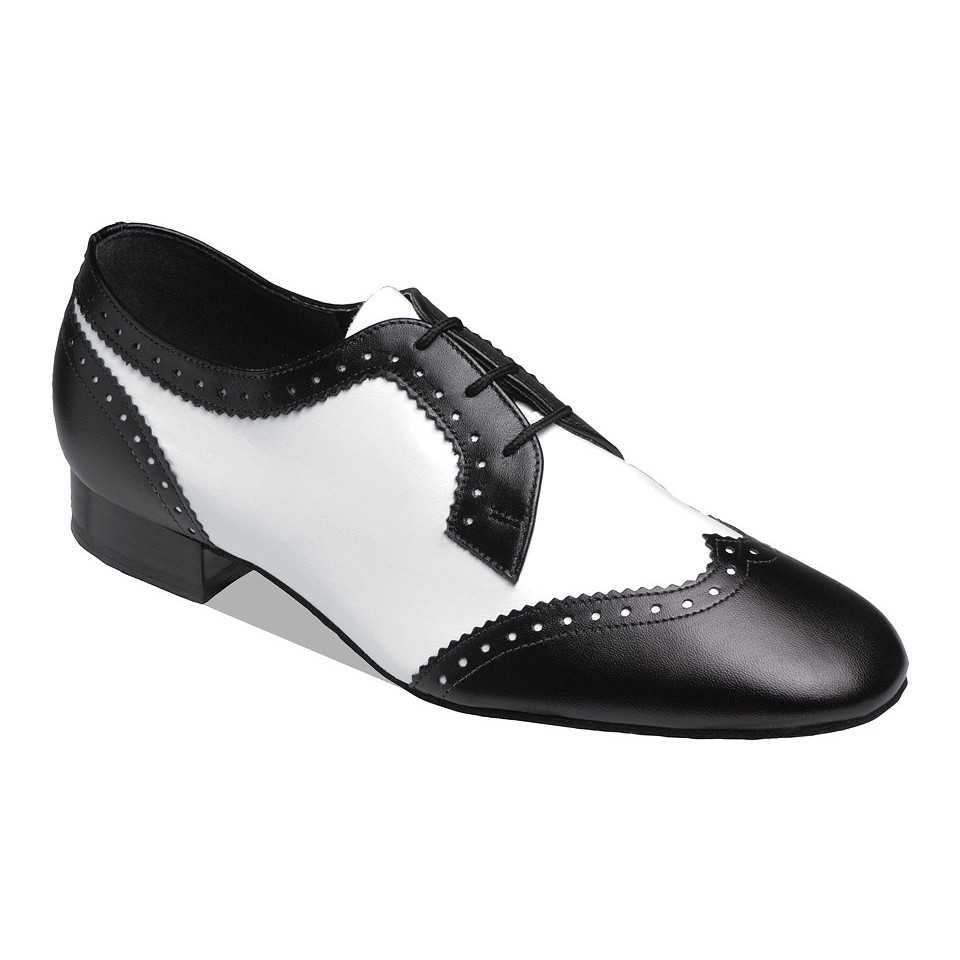 - Men’s Latin dance shoes are typically lightweight, flexible oxfords with a 1.5 inch “Cuban” heel and suede soles. Styles include white, black, two-tone spectator shoes and other color combinations.