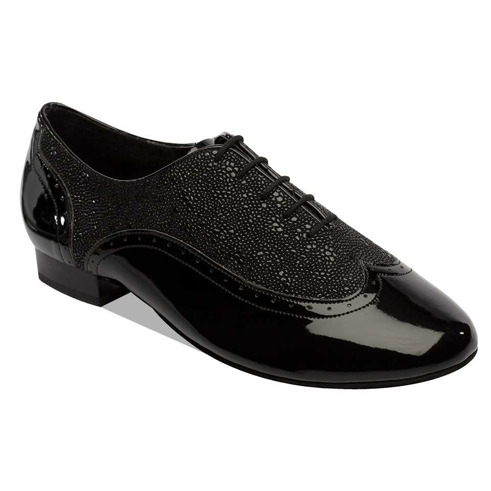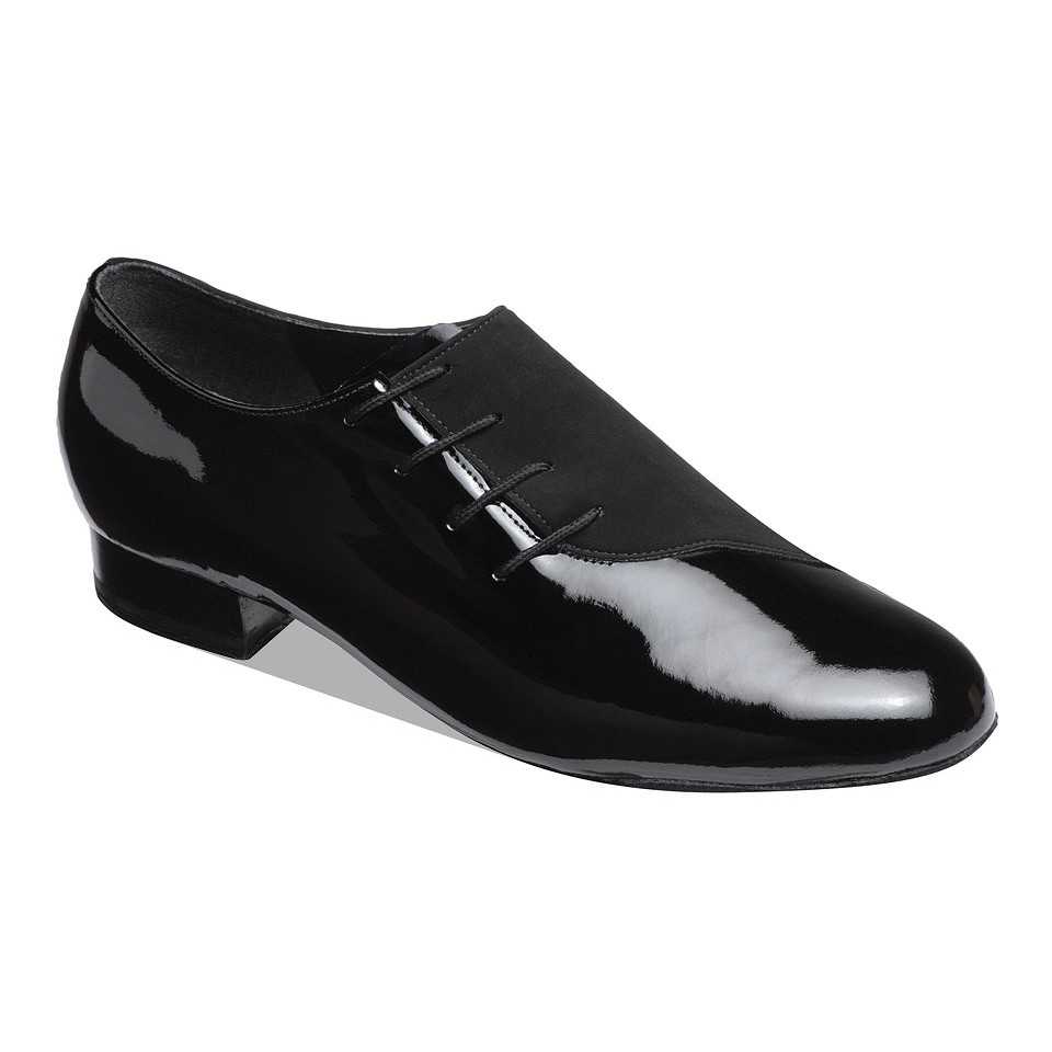 - Men’s dance shoes are typically black lace-up Oxfords with a flat heel for standard dances and a 1 to 2 inch heel for Latin dances.